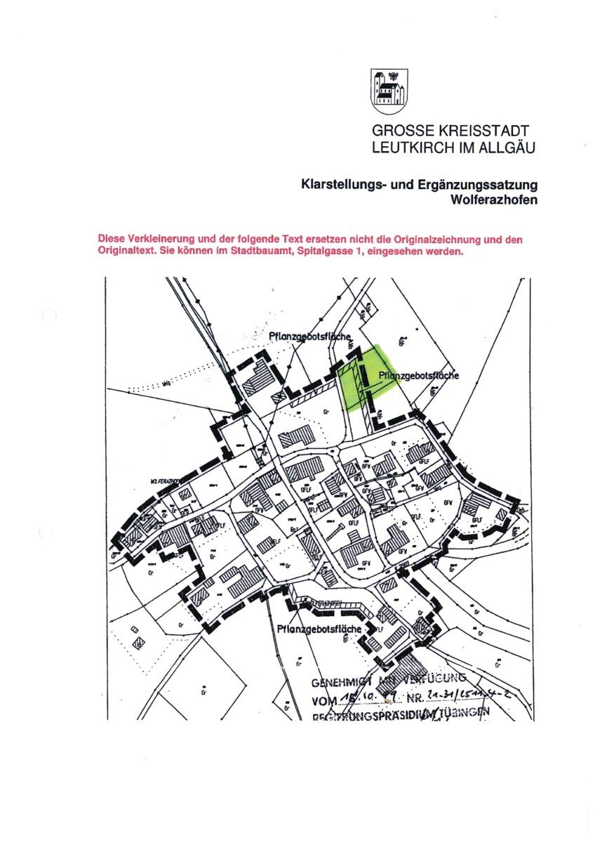 Zu beachten ist darüber hinaus, die "Klarstellungs- und Ergänzungssatzung Wolferazhofen", siehe hierzu auch den veröffentlichten Lageplan.