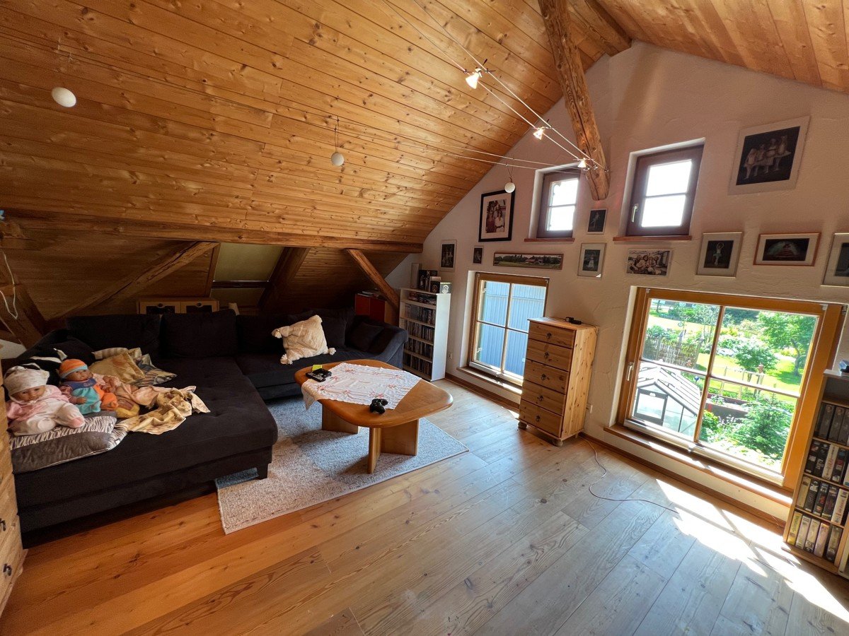 Im südwestlich orientierten sonnigen Wohnbereich mit seinem behaglichen Holzofen, spüren Sie sofort die warme Atmosphäre, die dieses Haus umgibt. Die erwähnte innovative Heiztechnik mit Wärmepumpe, PV-Anlage inklusive Batteriespeicher und ggf. alternativ einsetzbarem Holzkessel, sorgt für ein nachhaltiges Zuhause, das Sie mit gutem Gewissen genießen können.