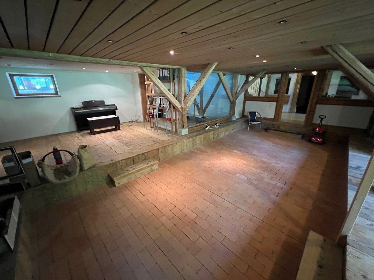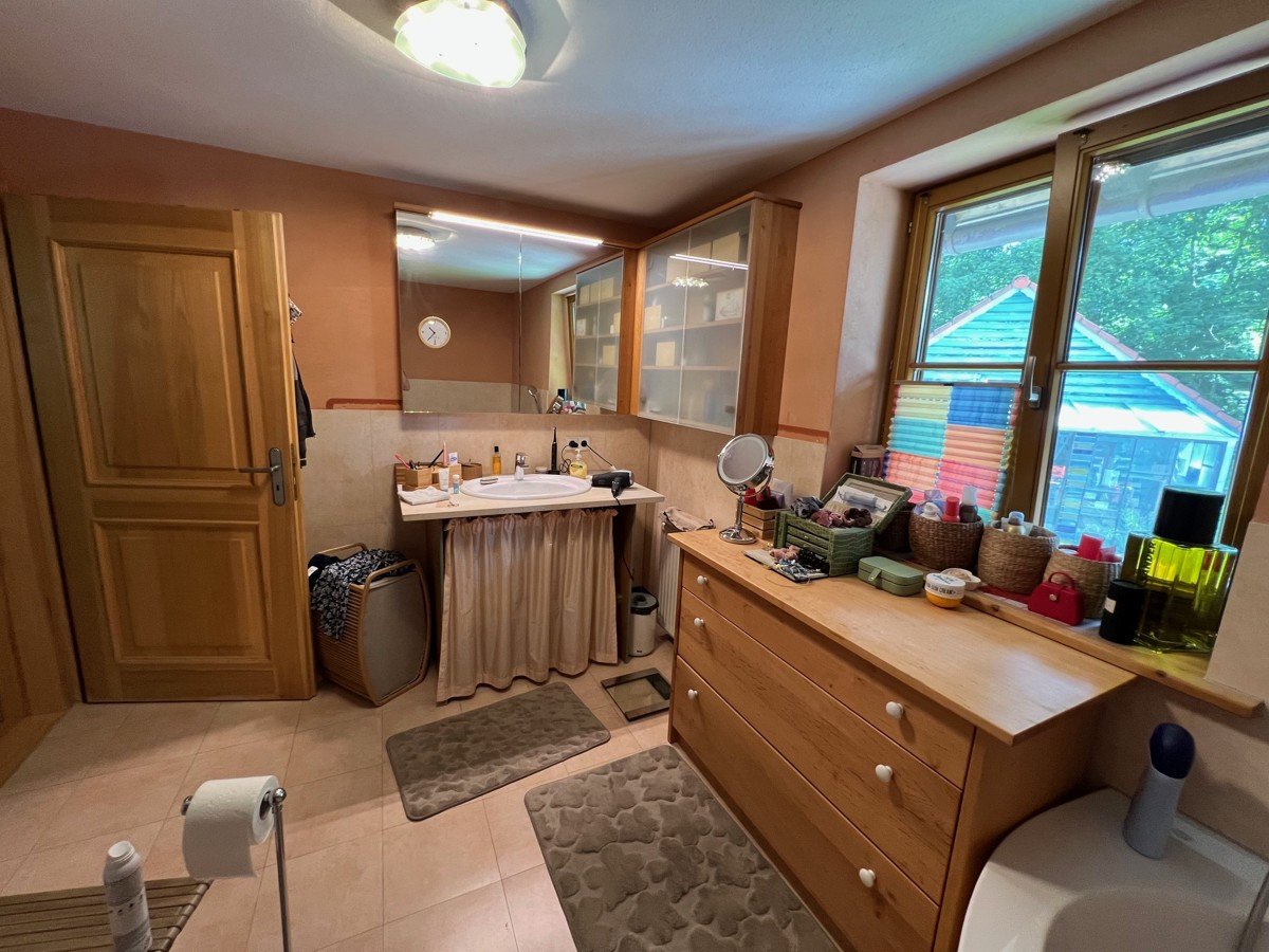 Im Untergeschoss befindet sich ein großer individuell gestalteter, gut belichteter Raum mit Holzherd und Duschbad - perfekt für Gäste, als Hobbyraum oder für kreative Projekte. Diese Fläche is nicht in der Wohnflächenangabe enthalten. Hier können Sie Ihre persönlichen Wünsche verwirklichen und das Haus ganz nach Ihren Bedürfnissen gestalten.