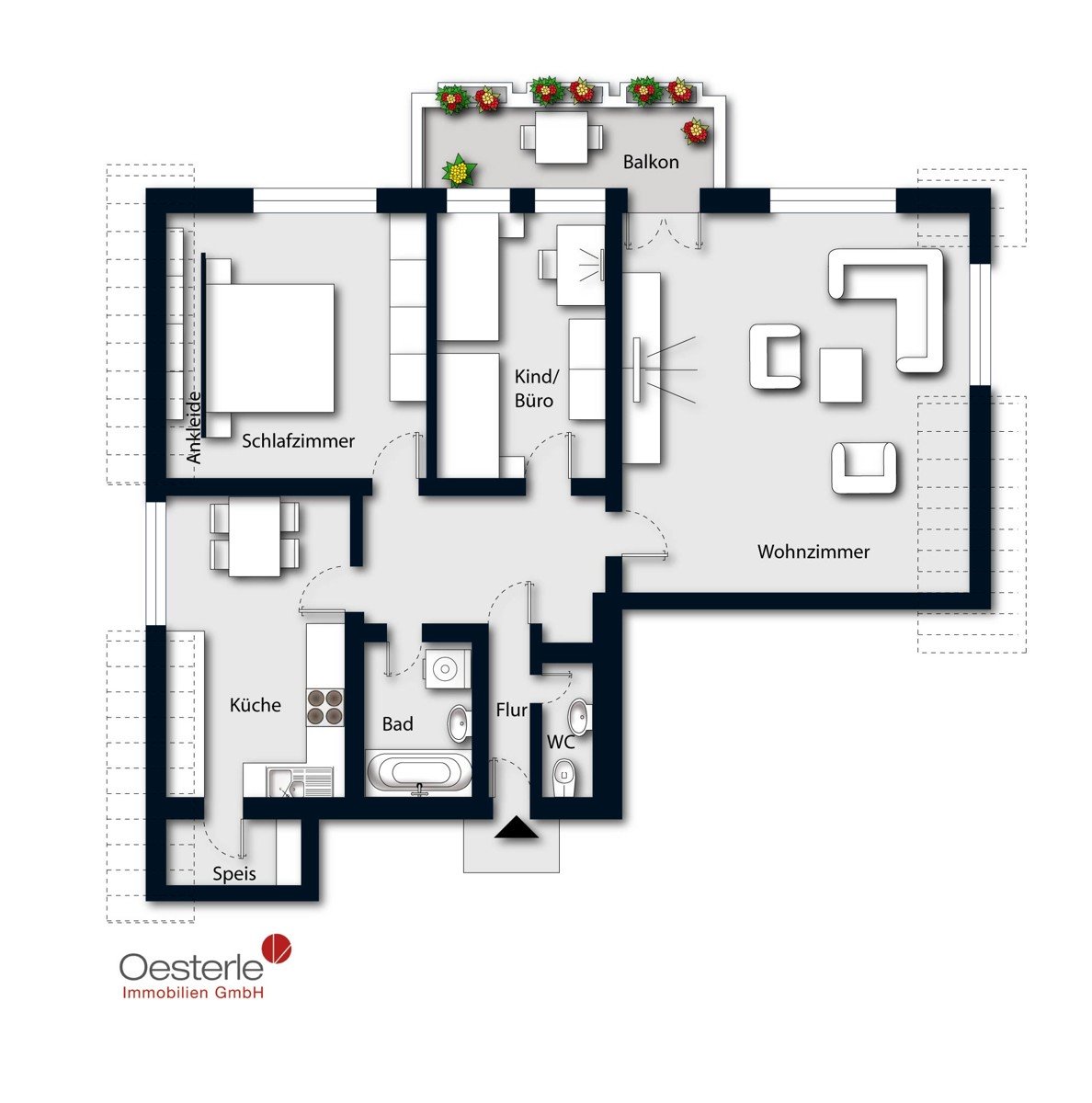 Bei dieser Wohnung handelt es sich um eine großzügig geschnittene und helle 3,5-Zimmer-Wohnung im 1. Obergeschoss, bzw. im 1. Dachgeschoss eines Wohn- und Geschäftshauses, das ca. 1981 errichtet wurde. Am Altstadtrand von Leutkirch, sehr zentral und doch etwas zurückversetzt, weg von der Straße Richtung Wilhelmshöhe ausgerichtet, liegt die zum Verkauf stehende Wohnung.