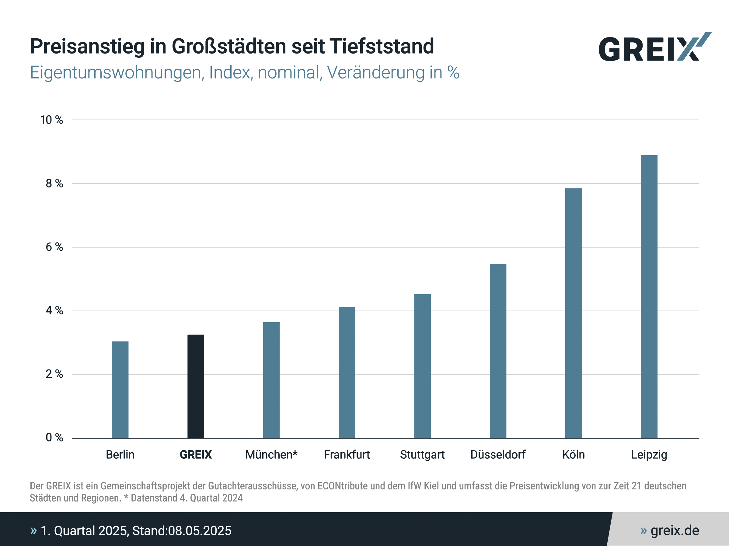Danach sind die Preise für Wohnimmobilien in Deutschland im ersten