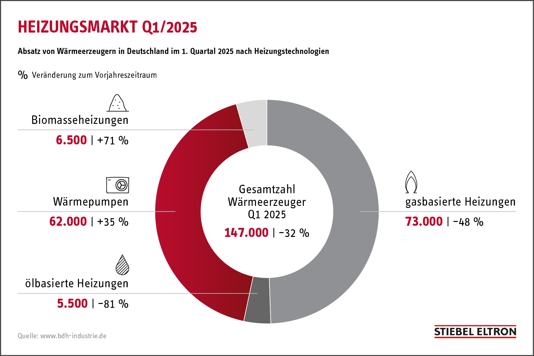 Wärmeerzeugern im ersten Quartal 2025 um 48 Prozent und der von